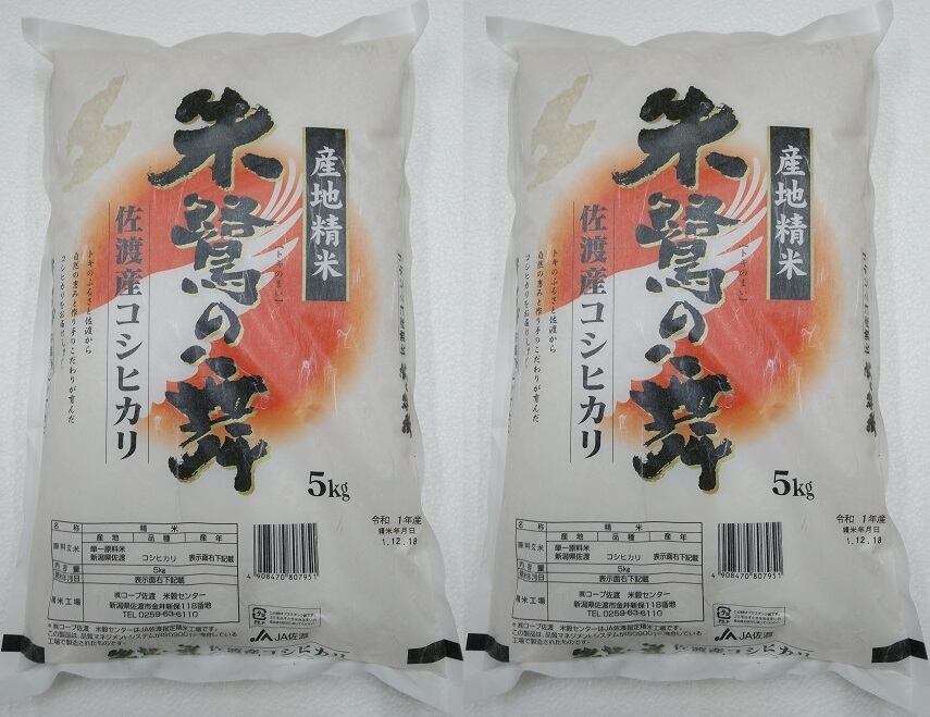 令和7年産 佐渡産こしひかり米「朱鷺の舞」10kg(5kg×2個) 関東地域送料込価格!